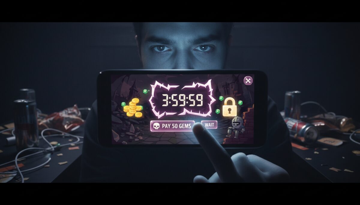 Explore how mobile games use psychological tactics, artificial timers, and frustration to turn free players into high-spending, frequent customers.